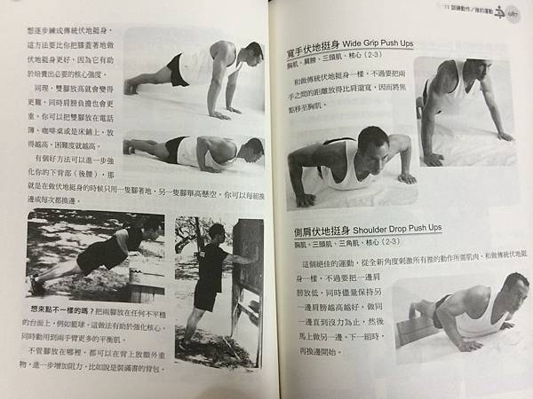 先鋪陳了一下,好友奎垣送我的這本書「你的身體就是最好的健身房」,非常適用於我,我目前一週做兩次徒手核心(約3天做一次),包括靜態+動態,約20-30分鐘,那這本書更是將徒手自身的力量成為健身器材,發揮到淋漓盡致,是我喜歡的工具書。